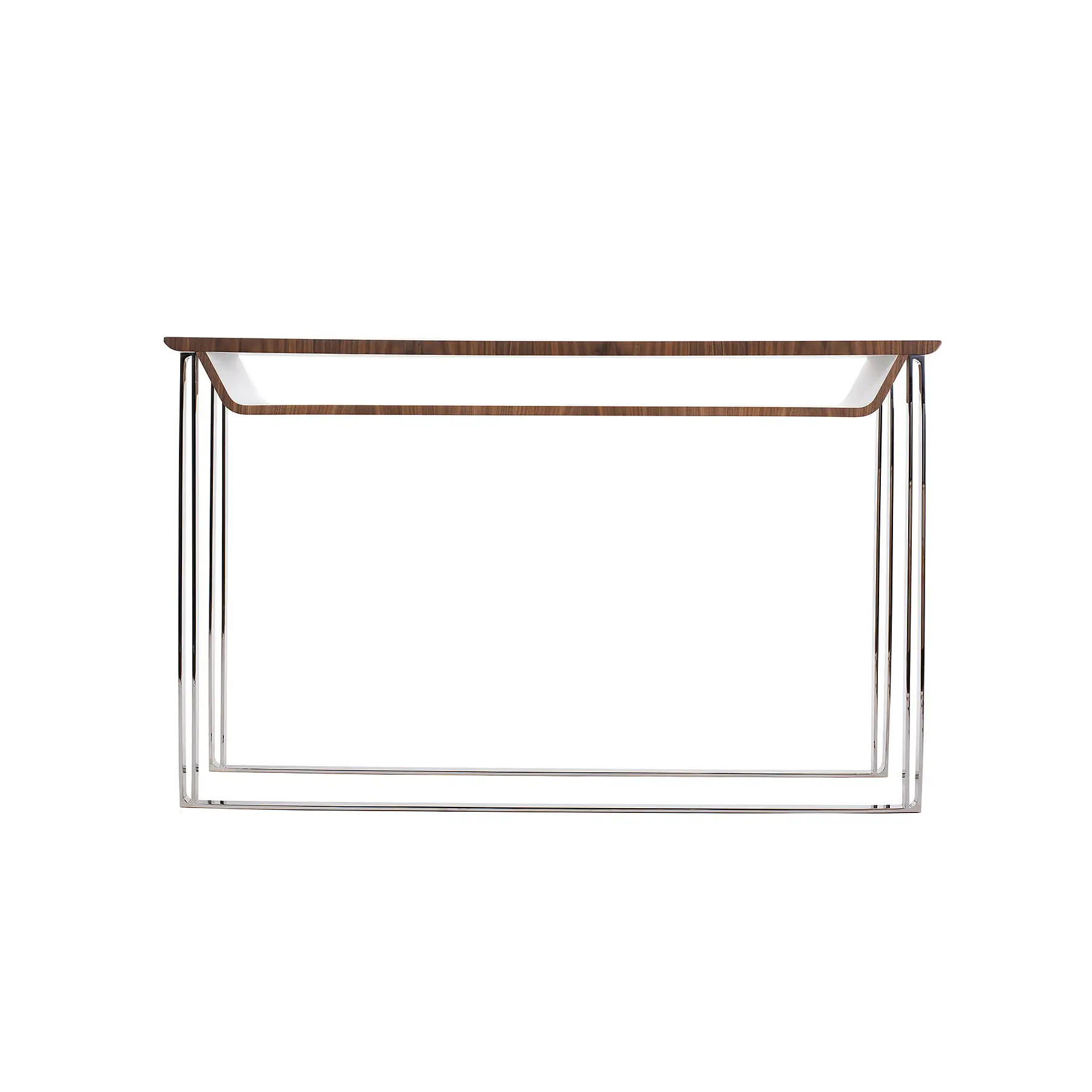 The great advantage of these console tables and side tables/bedside tables is the space under the rectangular top: practical, aesthetically pleasing and original. This upper section, hollowed out and supported by metallic legs, gives the impression of being suspended and of lightness.