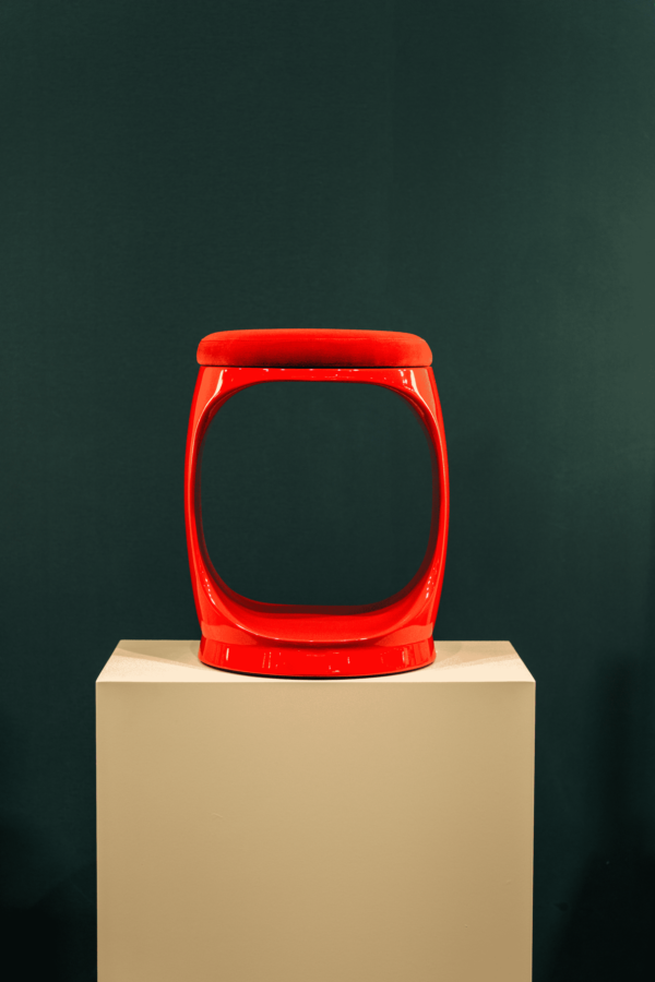 Our shade of red, which can be described as poppy red, is intense and powerful, accentuating the harmonious curves and sleek design of the stool. This universal color enhances the Signet Ring stool, highlighting its geometric shapes and elegant lines.