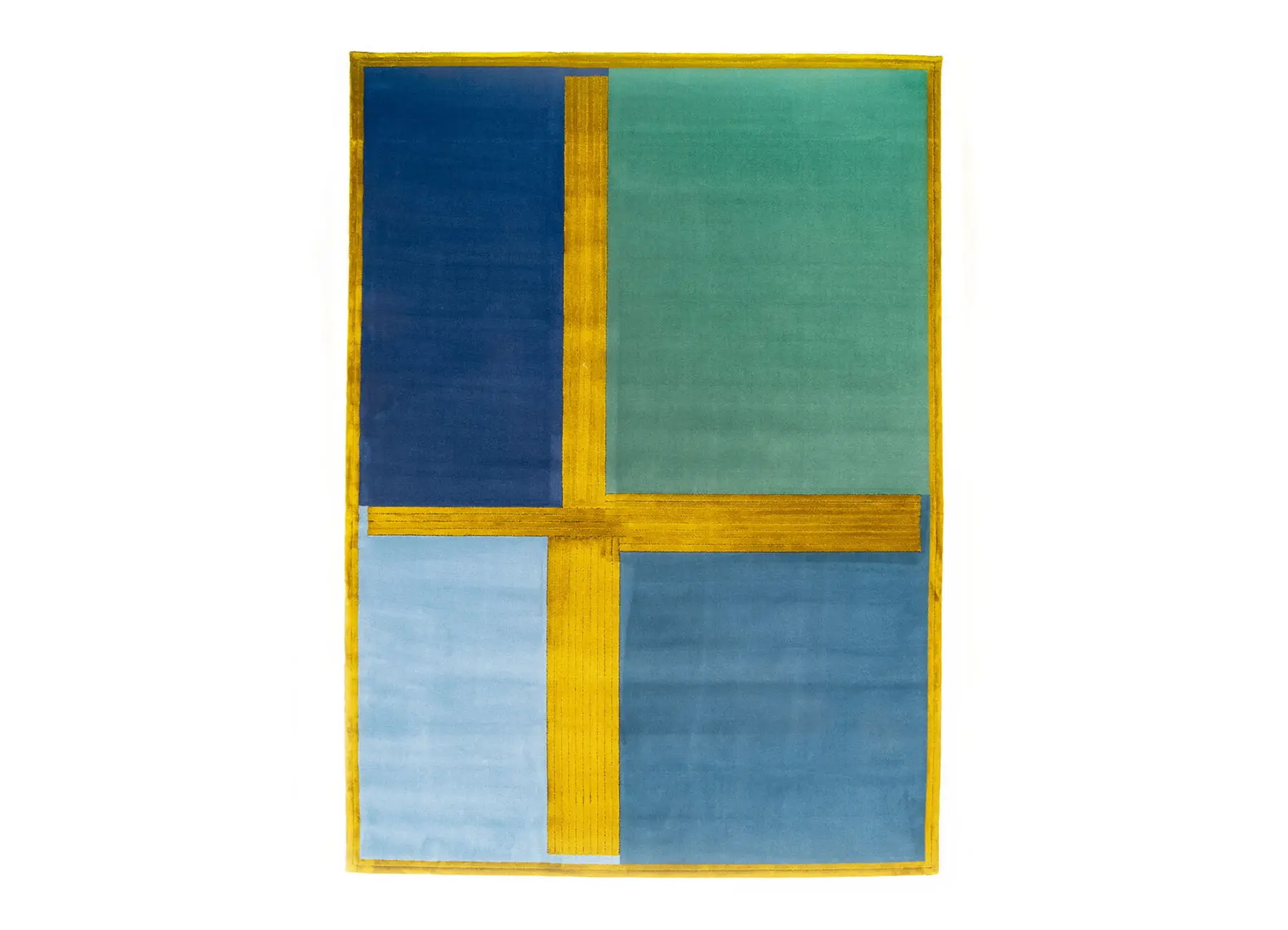 The “Ocean” rug from the Ebb & Flow collection poetically evokes the hypnotic movements of the sea and the shifting reflections of the ocean. Its shades of blue and green create a vibrant yet calming palette inspired by marine elements.