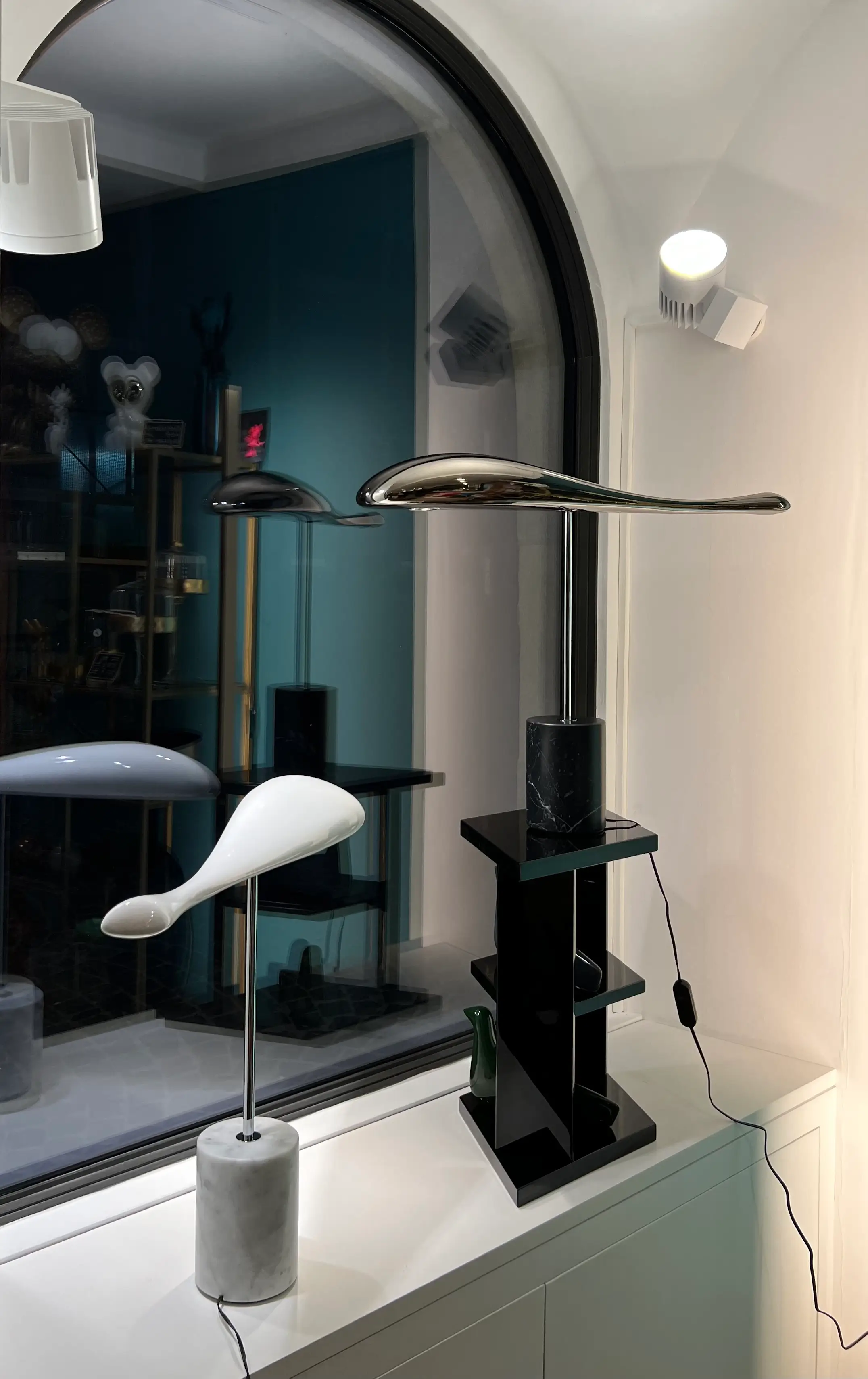 Offrez à votre intérieur un objet d’exception : la lampe Flying Fish en finition chrome. Entre l’élégance intemporelle du marbre, la finesse de la céramique et l’éclat luxueux du chrome, c’est l’équilibre parfait entre raffinement et modernité.