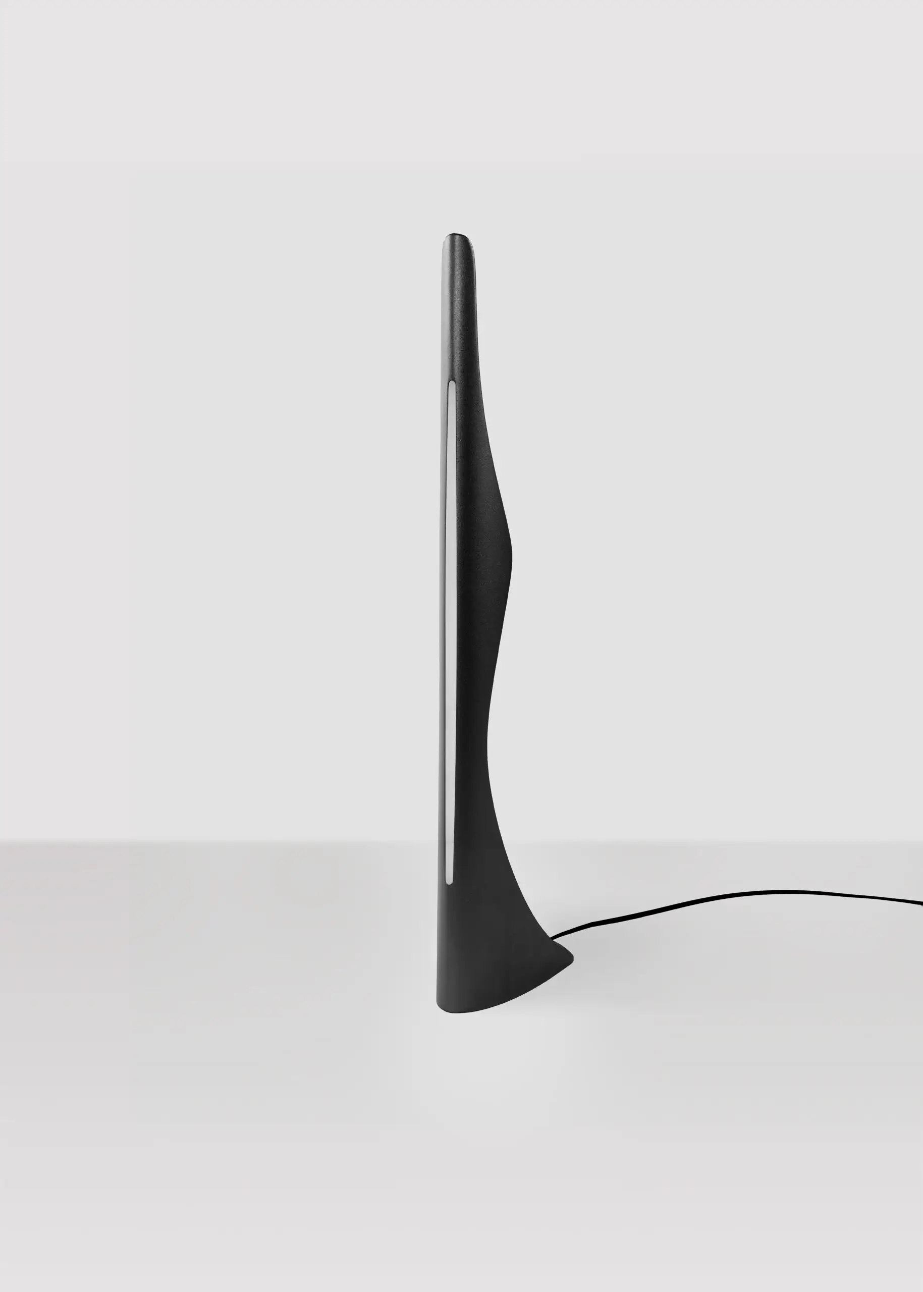 Le noir, profond et dens accentue l’élégance du dessin tout en absorbant subtilement la lumière. Il confère à la lampe un caractère intense et mystérieux renforçant son aspect sculptural. Fabriquée en aluminium à la finition mate, la lampe Silhouette impose une présence raffinée et contemporaine. Son éclairage LED de 7W, diffusé par un bandeau dissimulé derrière un écran translucide crée un halo doux et enveloppant, qui contraste avec l’opacité du noir pour un effet visuel saisissant.