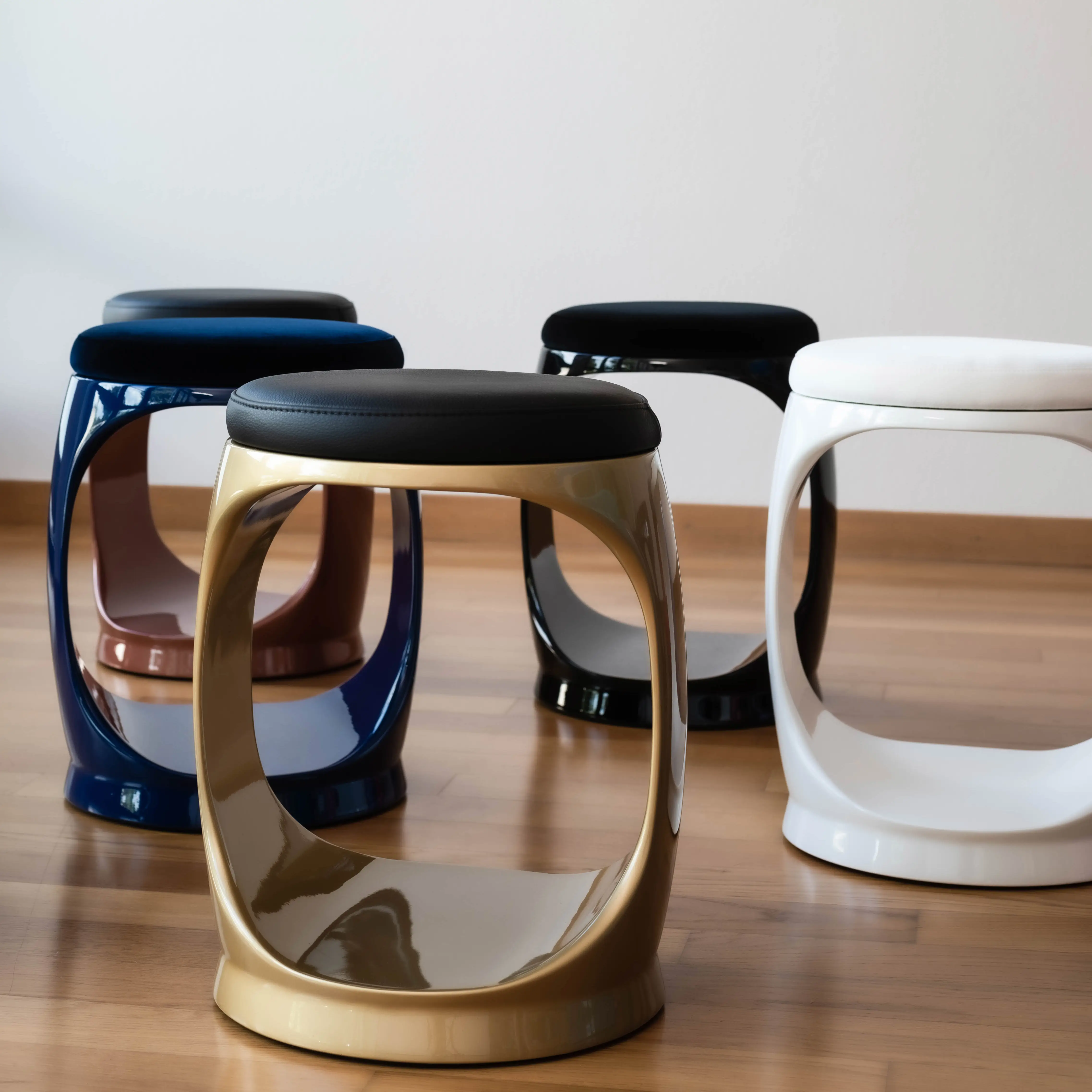 Dans cette version noire, notre tabouret signature gagne en intensité et en sobriété. Ses lignes épurées et sa forme parfaitement équilibrée sont mises en valeur par cette teinte foncée. La finition brillante noire accentue ses courbes et lui confère une présence visuelle forte, transformant une pièce fonctionnelle en un objet de design qu’il faut posséder.